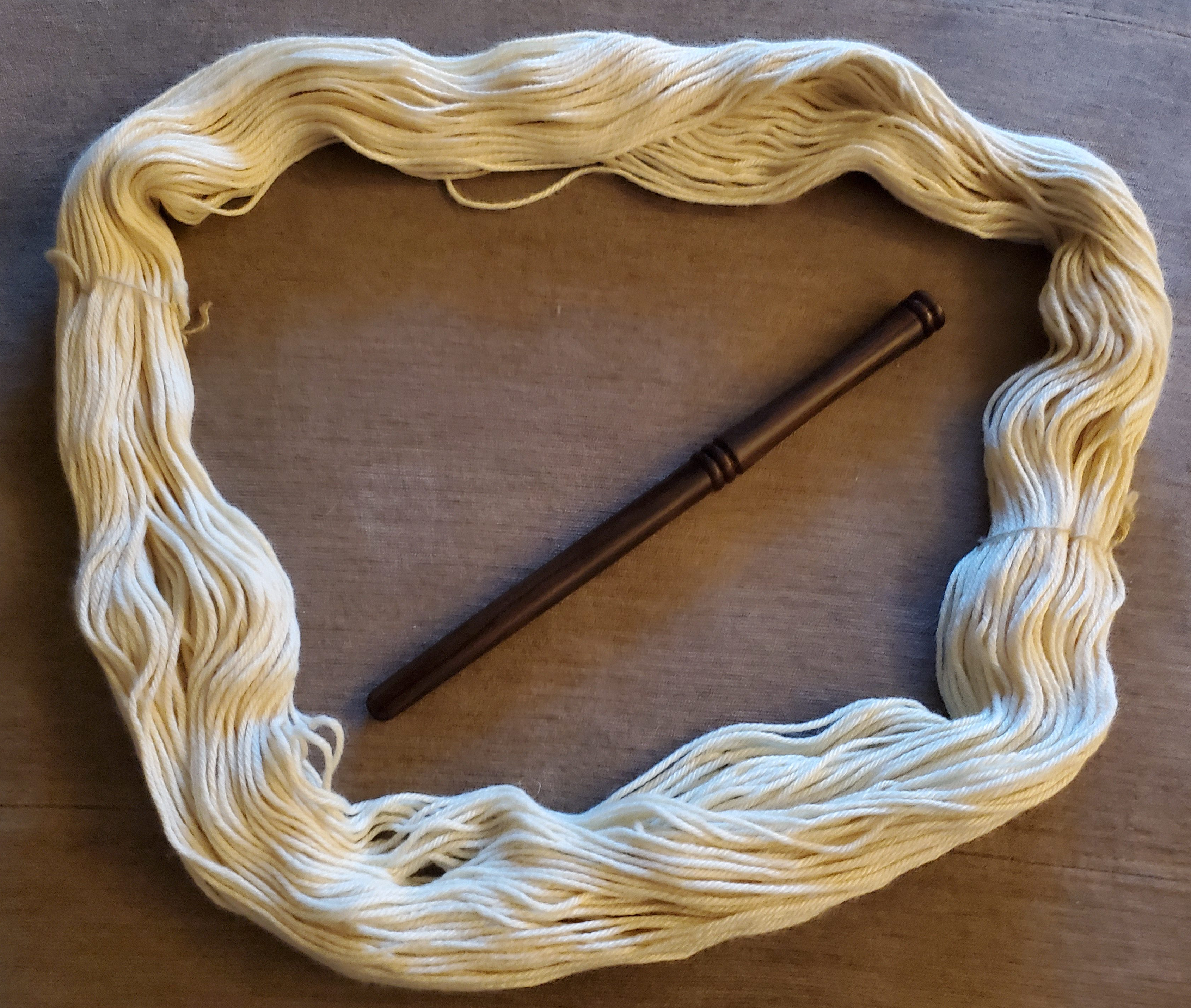 A while back I’d bought a Nostepinne, which is this old-school traditional yarn winding device that’s basically just a smooth, tapered wooden stick. It’s kinda funny actually, a lot of internet reviews you’ll find are from people who bought them to use as a wand for their kid’s wizard halloween costume.