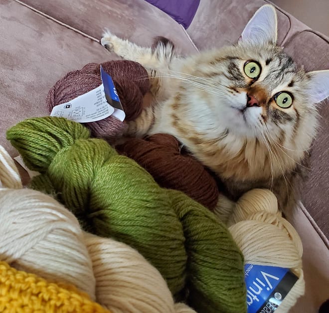 So I made a compromise – I can acquire as much new yarn as I want, as long as it’s secondhand or salvaged. Sometimes I do let myself buy a little bit of new yarn if I really need something specific to finish a project, but I’ve been trying to use what I have as much as possible. It turns out to be a pretty fun creative challenge actually, being constrained by only being able to use what you already have.